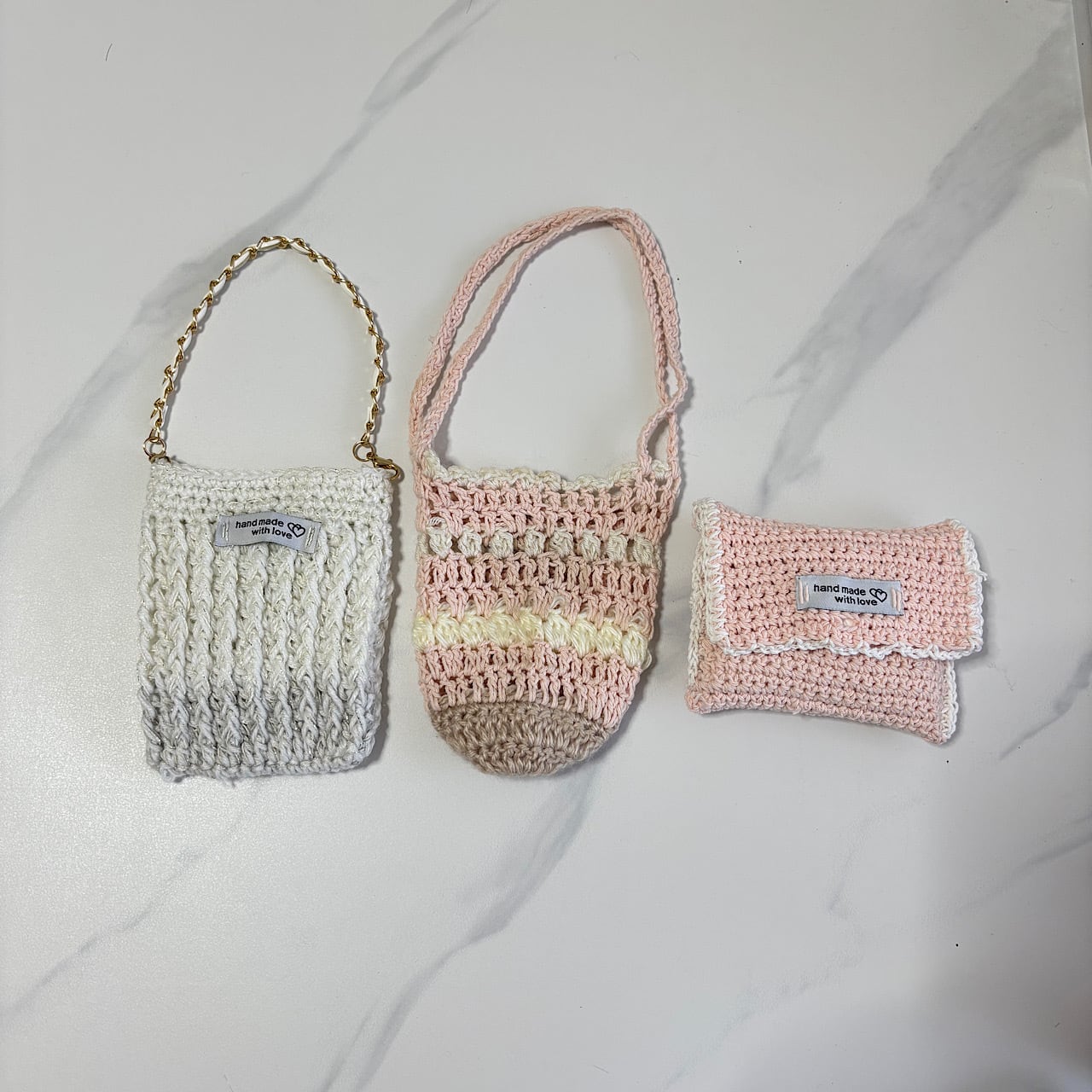 カフェでテイクアウトした複数のドリンクや お財布、スマホ、鍵などが入るコンパクトサイズのミニバッグです⭐︎ 実用性に優れたデザインで、幅広い年齢層の方にお使いいただけます。 デイリーユースに使えるので、ちょっとしたお買い物や日常使いに最適です。 デイリーユースなミニバッグはちょっとしたお買い物や日常づかいに最適です。 サブバッグとしてかなり用途さまざまにお使いいただけます♩ コンパクトなのでバッグインバッグにもおすすめです。 会社でのランチタイム 愛犬とのお散歩に スーパーや病院に行くときに デートに お子さまのおむつ入れとして 旅先で カフェやお散歩で 是非あなたの日常に取り入れてください♡