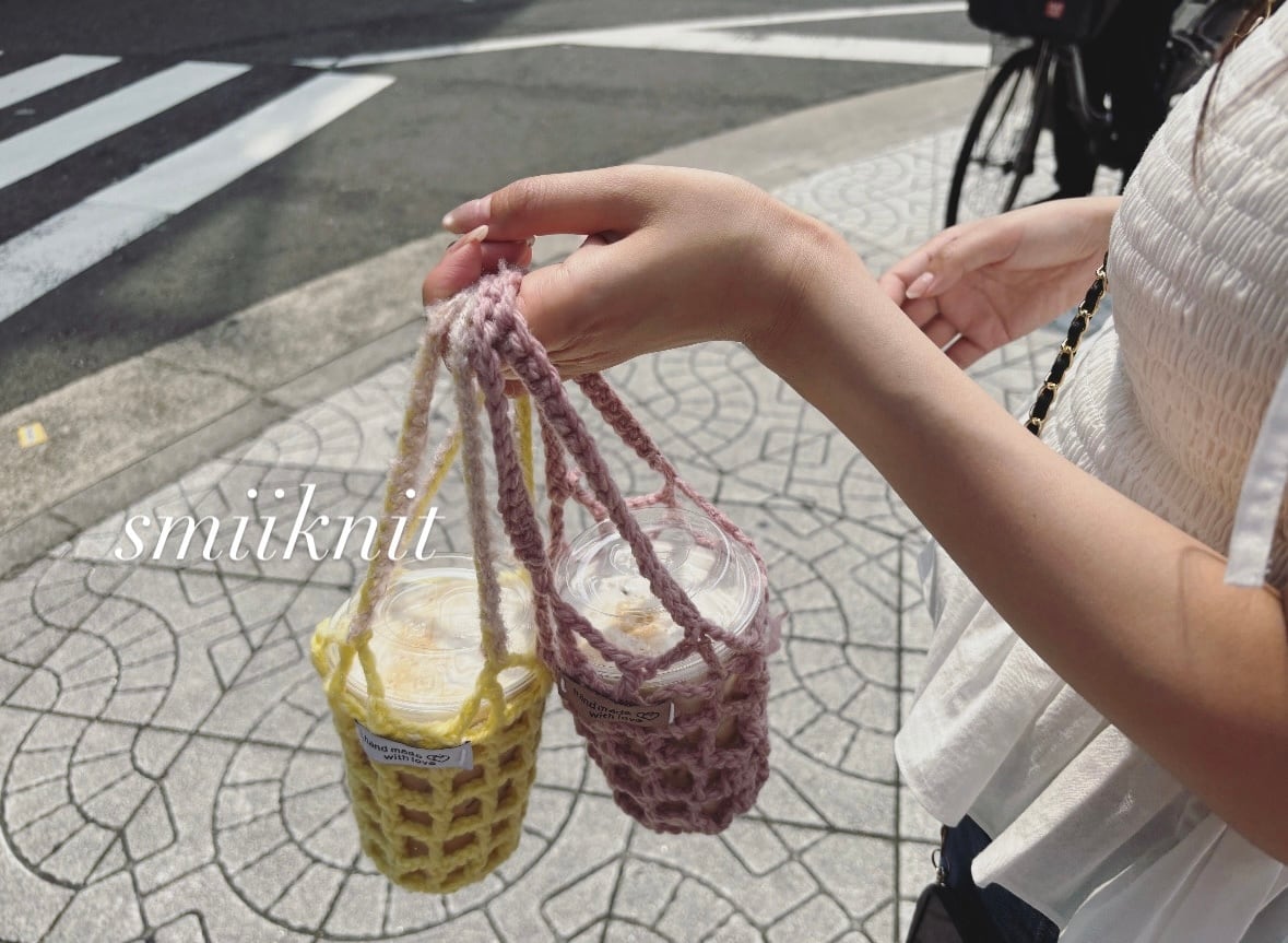Free size アクリル毛糸でしっかりと編み込んだこのドリンクホルダーはとても頑丈で、安心感のある快適な使い心地が特徴です♡ コーヒーのカップからペットボトルまでしっかりとホールドします。 また、ベビーカーや自転車での移動の際にもドリンクを入れて引っ掛けてお持ち帰りも可能です♩ 少しの揺れや段差でも溢れる心配もなく、ストレスフリーな使い心地です♡ [使用シチュエーション] ・オフィスで ・通勤・通学で ・お散歩に ・お祭りやフェスなど ・ジム、ピラティス ・ライブやコンサートで 様々なシチュエーションで大活躍です。
