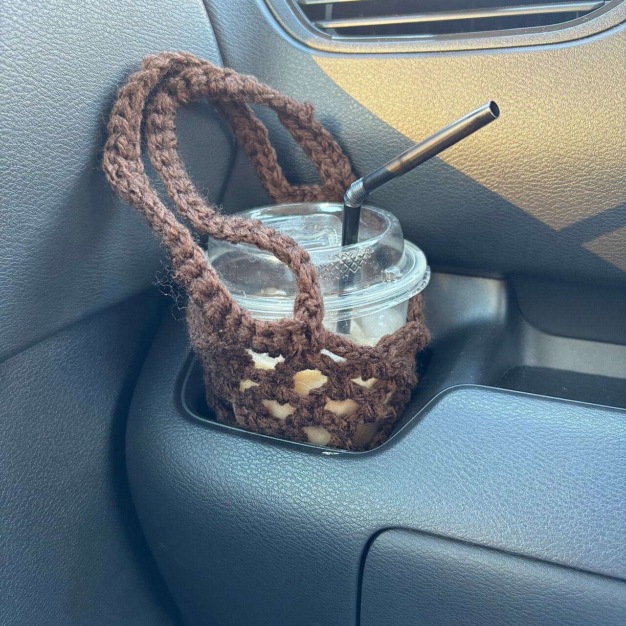 アクリル毛糸でしっかりと編み込んだこのドリンクホルダーはとても頑丈で、安心感のある快適な使い心地が特徴です♡